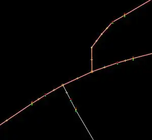 | "Halb-Kreuzung", mehrere Einmündungen nahe beieinander, aber ohne einen gemeinsamen Kreuzungs-Node | ||