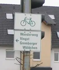 Lokale Radwege sind je nach Region unterschiedlich ausgeschildert. Häufig wird ein rechteckiges Schild mit grünen Fahrrad auf weißen Hintergrund verwendet. Es gibt auch Varianten mit anderer Farbgebung.