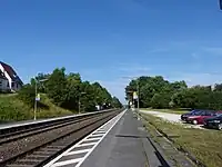 | Ein kleiner Haltepunkt ohne Weichen, an der Reisende aus Zügen ein- und aussteigen können. |