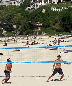 | Eine auf Sand gespielte Variante des Volleyballs. |