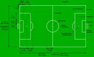 Zeichne das Spielfeld auf der weißen Seitenlinie (wenn vorhanden) und füge Folgendes hinzu: