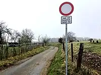 | Die Nutzung der Straße ist ausschließlich für alle Arten von Fahrzeugen erlaubt, die sie für land- oder forstwirtschaftliche Zwecke nutzen. |