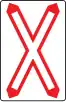Hinweis: Dieses Zeichen kündigt einen nicht durch Schranken gesicherten Eisenbahnübergang an. |