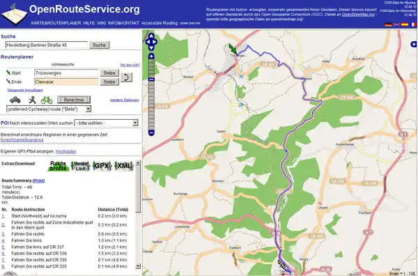 - Die Route wird am Computer geplant (z.B. mit OpenRouteService, einer auf OSM-Daten basierenden Routing-Software) und der Kartenausschnitt und evtl. der Routenverlauf zum Mitnehmen ausgedruckt.