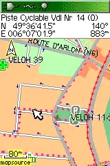 Die Fahrradkarte von Felix Hartmann (user:extremecarver) legt nicht so viel Wert auf die topografischen Merkmale, sondern mehr auf die gute Lesbarkeit der wichtigsten Radfahr-Informationen (Straßen, Wege, Beschaffenheit, Einbahnstraßen, Radrouten, radbezogene POIs). Auf der zugehörigen Web-Site gibt es jede Menge Informationen, u.a. auch eine Legende und eine Installationsanleitung für MapSource. Die Installationsdatei für die Luxemburg-Map ist auf der Länder-Downloadseite zu finden.