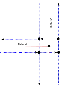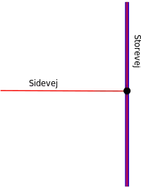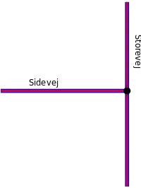 For at illustrere dette tegnes Storevej med blå kanter i begge sider. Sidevej er f.ex. tagget som