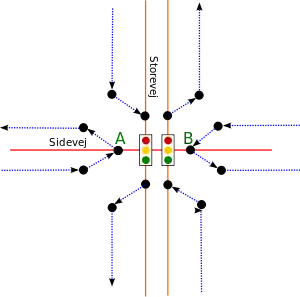 Kryds mellem dobbeltsporet vej og sidevej