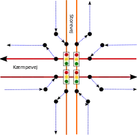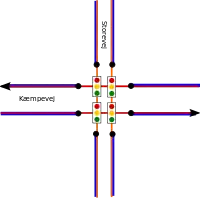 Kryds mellem to dobbeltsporede veje