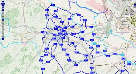 | R 6 | Zum Gut Varrel (lcn) | Mitte, Stickgras/Annenriede, Varrel, Huchting, Iprump/Stickgras | 17 km | 27172 | |