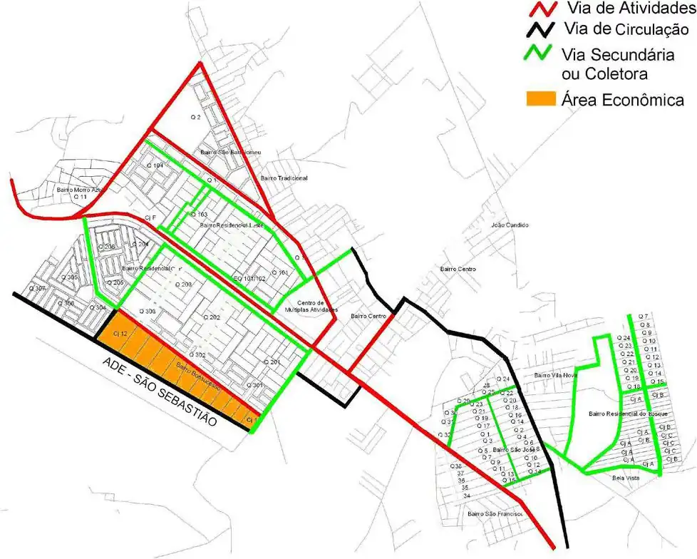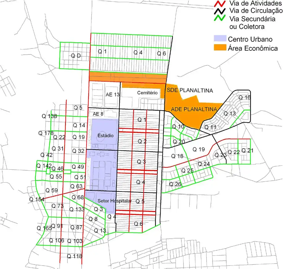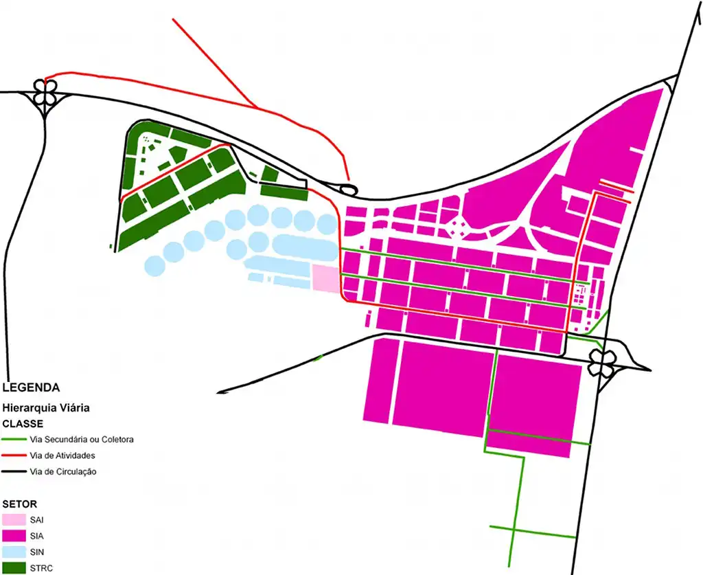 Vias secundárias e terciárias correspondem a coletoras primárias e secundárias, respectivamente. Como parte desta classificação não está publicada, pode-se produzir um mapa tanto visual- quanto logicalmente interessante (para roteamento por carro) seguindo esta regra: