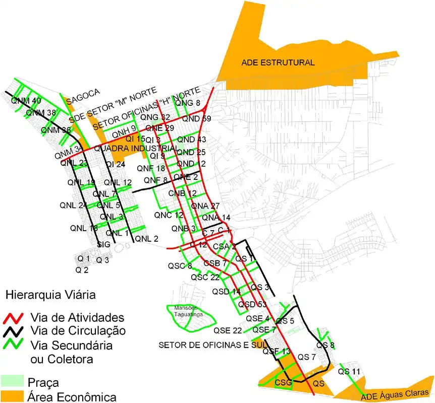 Veja Distrito Federal, Brazil § Classificação oficial de vias para a classificação oficial das estradas distritais, vias de trânsito rápido e arteriais.