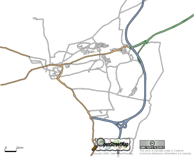 • - Straßen für Kraftfahrzeuge sind vorhanden. Einbahnstraßen und Fahrverbote sind eingetragen. - Schlüssel: c