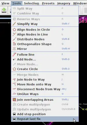 Dos opciones se añadirán al menú Herramientas de JOSM a través del complemento pt_assistant: