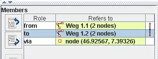 • un miembro con el rol to haciendo referencia a una vía ("way") de OSM
