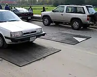 | traffic_calming | chicane | Chicane. Sucesión de curvas cerradas con el propósito de frenar el tráfico. | ![]() | ||
