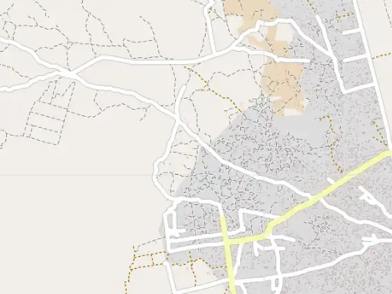 - Ahora, compruebe si faltan edificaciones. No todas las edificaciones son rectangulares; en esta imagen, se ven algunas viviendas o cabañas redondas (etiquetadas como 'building=hut'). Si hay muchas entidades que deben mapearse, se puede invalidar. Si solo hay unas pocas, es más sencillo y rápido para el validador realizar estas correcciones mientras examina la tesela. Dada la densidad de viviendas en algunas zonas, es bastante común que se pasen por alto edificaciones.
