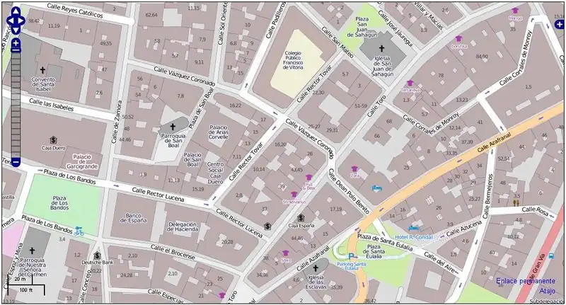 Uno de los ejemplos más sencillos de multipolígono: dos polígonos que comparten un lado. En este caso se trata de crear dos edificios unidos. En la siguiente imagen se pueden ver varios ejemplos en la ciudad de Salamanca.