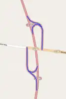 Las vías de acceso/rampas suelen considerarse "pertenecientes" a la carretera por la que salen y entran. Esta suele ser la clasificación más alta de las carreteras de intersección porque las rampas de entrada y salida casi siempre tienen el mismo tipo de restricciones que la carretera principal. Por lo tanto, highway=primary_link debería usarse en una vía de acceso/rampa que conecta un highway=primary a una carretera secundaria, terciaria u otra carretera menor.
