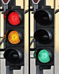 semáforos, llamados también luces de control de tráfico, lámparas de tráfico, luces de señalización, luces de alto o luces rojas, son dispositivos de señalización colocados en las intersecciones de las vías, cruces peatonales y otros lugares para controlar flujos de tráfico que compiten entre sí.