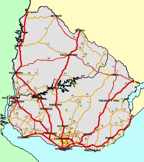 - Los caminos rurales más importantes de los departamentos del interior del país (los que no son en Montevideo), deben marcarse con