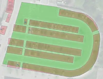 parking=surface dans OpenStreetMap (en vert)Sur l'emprise