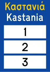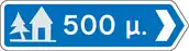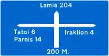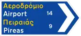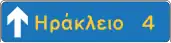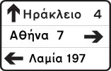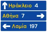 Προειδοποιητική κατευθύνσεων για συνήθεις οδούς με αναγραφές κατευθύνσεων και χιλιομετρικών αποστάσεων. | |