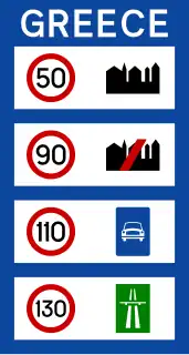 (σημ. επειδή το διάγραμμα της πινακίδας είναι παρωχημένο, χρησιμοποιείστε 130 στους αυτοκινητοδρόμους και 110 στις οδούς ταχείας κυκλοφορίας.) |