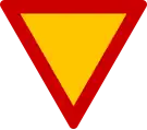 Υποχρεωτική παραχώρηση προτεραιότητας. Η πινακίδα αυτή σημαίνει ότι στον κόμβο προ του οποίου τοποθετείται, οι οδηγοί πρέπει να παραχωρούν την προτεραιότητα στα οχήματα, τα οποία κινούνται στην άλλη οδό. | highway=give_way