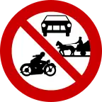 Απαγορεύεται η είσοδος σε οχήματα ορισμένων κατηγοριών (π.χ. σε μηχανοκίνητα και ζωήλατα οχήματα). | Οποιοσδήποτε συνδυασμός ετικέτας οχημάτων με αξία "no" (π.χ.motor_vehicle=no+carriage=no)