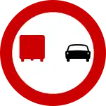 Απαγορεύεται στους οδηγούς φορτηγών αυτοκινήτων, μέγιστου επιτρεπόμενου βάρους που υπερβαίνει τους 3,5 τόννους, να προσπερνούν άλλα οχήματα. Αναγραφή στην πινακίδα, Ρ-31 ή πρόσθετη πινακίδα, που τοποθετείται κάτω από την πινακίδα | overtaking:hgv=no, overtaking:hgv=forward ή overtaking:hgv=backwardΕάν υπάρχει περιορισμός και στο βάρος, προσθέστε και overtaking:hgv:conditional=no (weight>[ο αριθμός βάρους σε τόνους]) , overtaking:hgv:conditional=forward (weight>[ο αριθμός βάρους σε τόνους]) ή overtaking:hgv:conditional=backward (weight>[ο αριθμός βάρους σε τόνους])