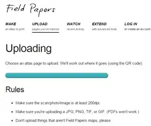 1. Open www.fieldpapers.org and click on Upload. You should get this screen: