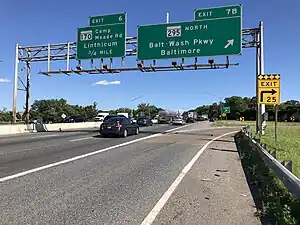 Interstate 695 Outer Loop at Baltimore Washington Parkway exit sign