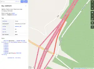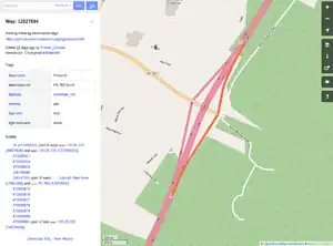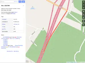 When adding interchange information to ways - please review the relationship of the interchange sign information and the connected ways. Sometimes a way will need to be split between an off ramp and an on ramp. Here is an example of when interchange information was added to a way that was both an off ramp and an on ramp: