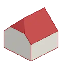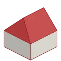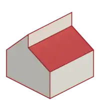 Pour les toitures ayant une arête supérieure (appelée le faîte du toit), cette arête est considérée par défaut comme parallèle au côté le plus long du bâtiment, ce qui correspond à roof:orientation=along. Utilisez la valeur across dans le cas contraire.