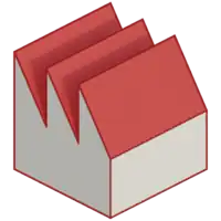 Indique qu'un bâtiment a différentes formes de toit en même temps. Il est déconseillé de l'utiliser car inutile pour le rendu (les toits avec cette valeur sont rendus comme plats). A la place, utilisez des aires avec building:part=* portant leurs propres attributs roof:shape=*. Un historique de cet attribut est décrit dans roof:shape=many