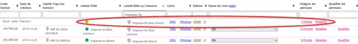 - Rechercher les losanges oranges dans la colonne Libellé OSM ;