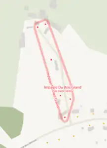 - Les voies manquantes apparaissent entourées en rouge à partir d’un zoom suffisant, puis le nom est affiché si l’on zoome encore. La carte OSM étant visible par transparence, on peut souvent constater à ce niveau quelle est la nature du problème.
