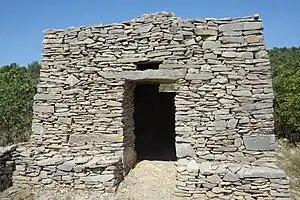 La capitelle ou cabane en pierres sèches est une construction fréquente dans nos garrigues, bâtie sans l'utilisation de liant, de mortier. Une autre caractéristique importante est sa voûte à encorbellement ou fausse voûte constituée de pierres plates disposées généralement en assises circulaires, chacune reposant légèrement en surplomb sur la précédente. Ces constructions sont souvent accompagnées de murs d'enclos; de murs de soutènement de terrasses, de clapiers (tas de pierres), témoins émouvants du travail acharné des défricheurs qui ont durant des siècles cultivé ces terres arides, pauvres et délaissées ou les pierres "poussaient" plus vite que leurs ceps de vigne ou leurs oliviers !
