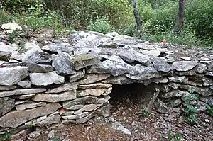 Abri basique en pierre sèche utilisé par les charbonniers appelé localement "cabane de bouscatier"