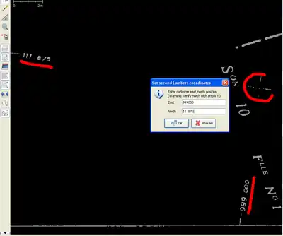 lors de l'étape de géoréférencement, le dialogue d'entrée des coordonnée n'est plus "modal" (c.a.d qu'il est possible de zoomer et déplacer l'image de fond pour pouvoir lire les chiffres sur les bords du plan)