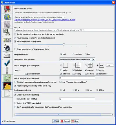 en ajoutant "cadastrewms.cacheDir" dans les "Advanced Preferences" (F12, puis onglet Einstein), vous pouvez redéfinir le répertoire par défaut du cache par votre propre répertoire.