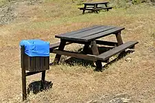 Marque la présence d'une poubelle pour piéton dans/sur un élément comme bench=*, shelter=*, public_transport=platform, etc.