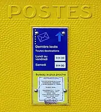 amenity=post_box collection_times=Mo-Fr 09:00-12:00,17:00; Sa 14:00 collection_times:local=Mo-Fr 23:00; Su 23:00 operator=La Poste