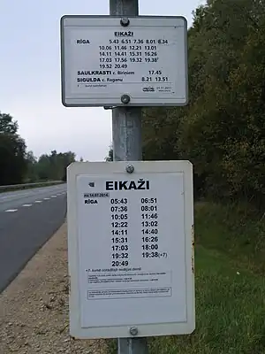 Tableau d'horaire imprimé sur du carton, plastique, etc qui montre les services prévus et fréquences. | |