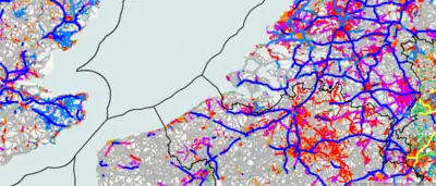 User:Flohoff a créé une visualisation des vitesses limites afin de vérifier une zone pour l'usage de maxspeed=* et d'autres attributs.