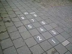 Une marelle, dessinée au sol. | ![]() | |||