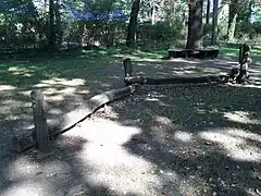 Poteaux ou perches décalés avec des éléments de marche à distance les uns des autres, pour sauter ou marcher de l'un à l'autre. | ![]() | |||