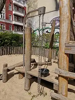 Une balançoire à bascule, appelée aussi 'tape-cul'. | ![]() | |||