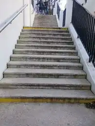 - bad - l'escalier est sensé disposé de contre-marches colorées, mais la peinture est passée avec l'usure du temps
