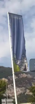 Un drapeau publicitaire, sur un mât. |